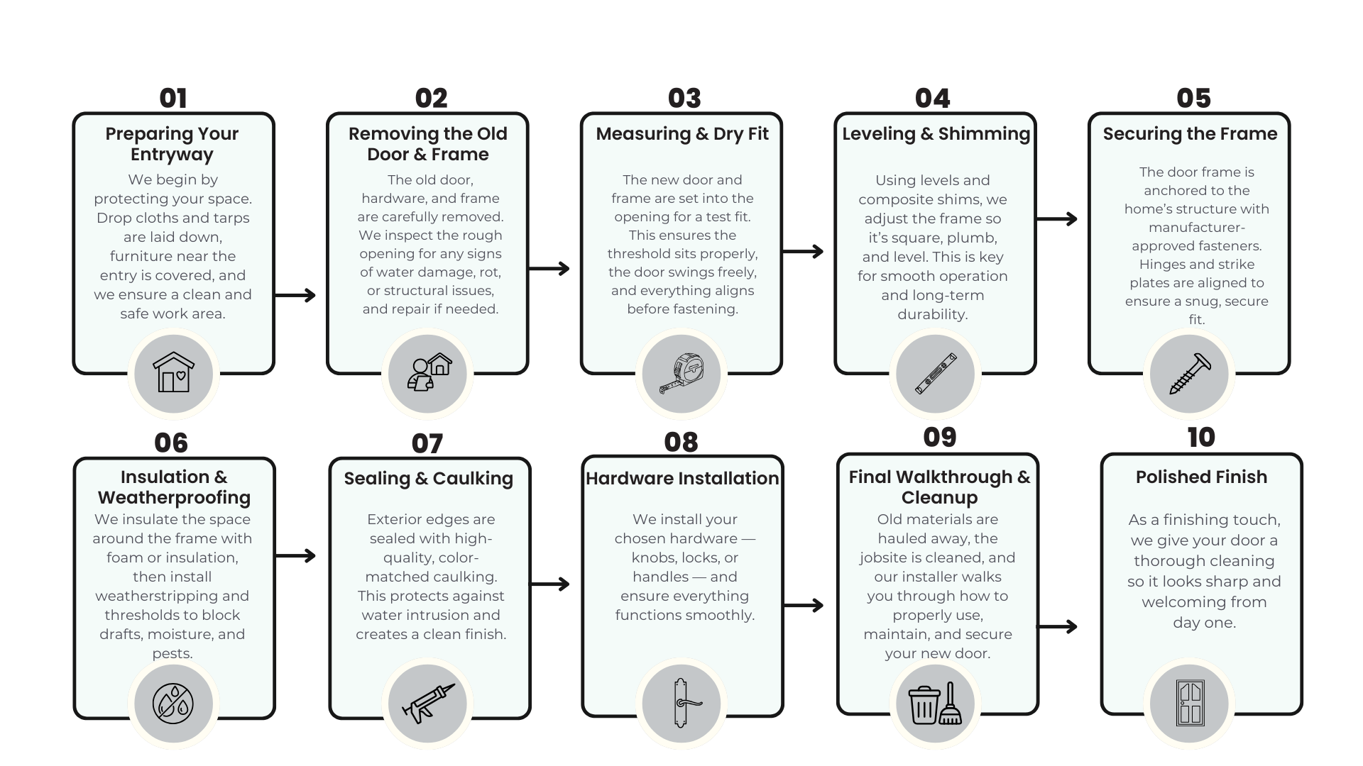 Most projects are completed faster than people expect. Our crews typically install 10–15 windows per day, so a home with 25 windows is usually finished in about two days. If you need more done in one day, let us know — we can staff the job to make it happen.